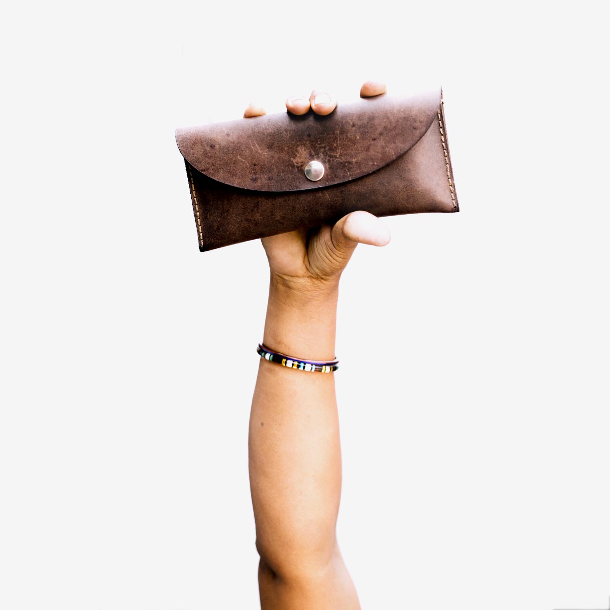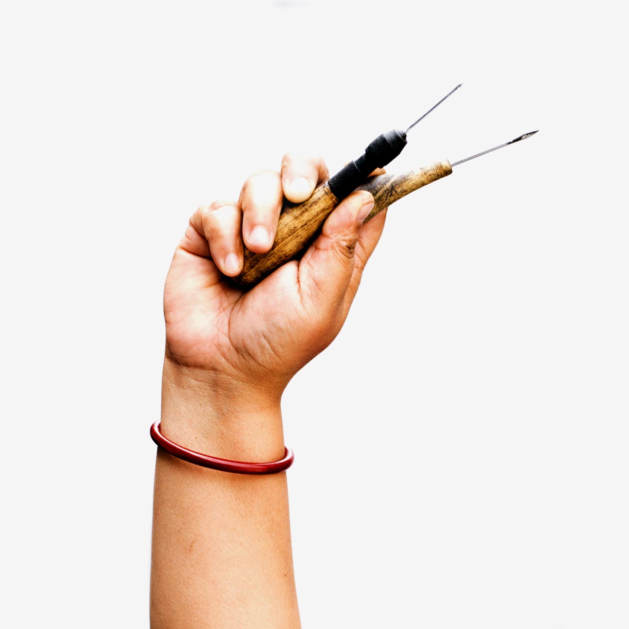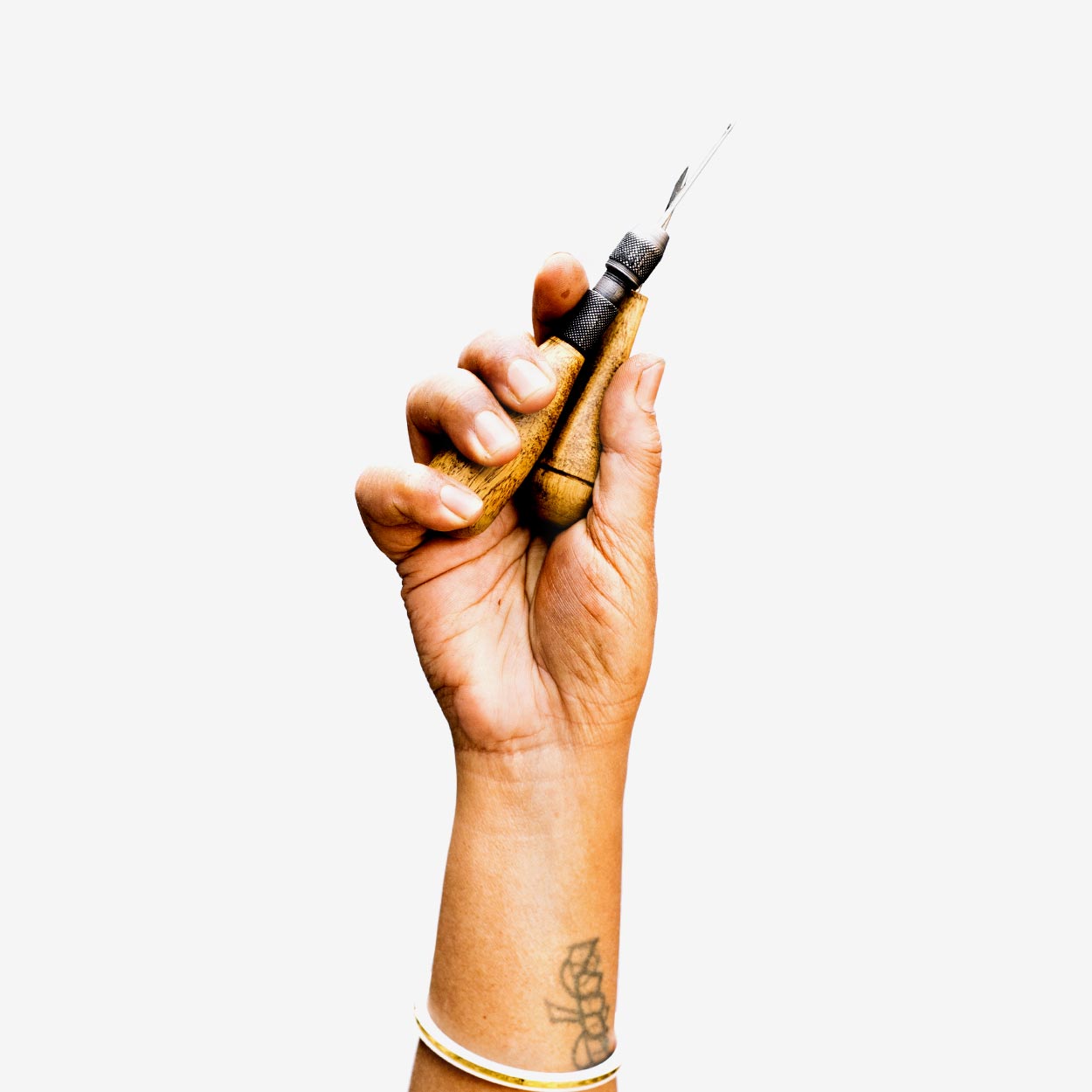 Open up your satchel or bag to find the name of the woman who made your bag. You can find it on the inside pocket, etched in English with her own signature in Bangla or Hindi underneath.